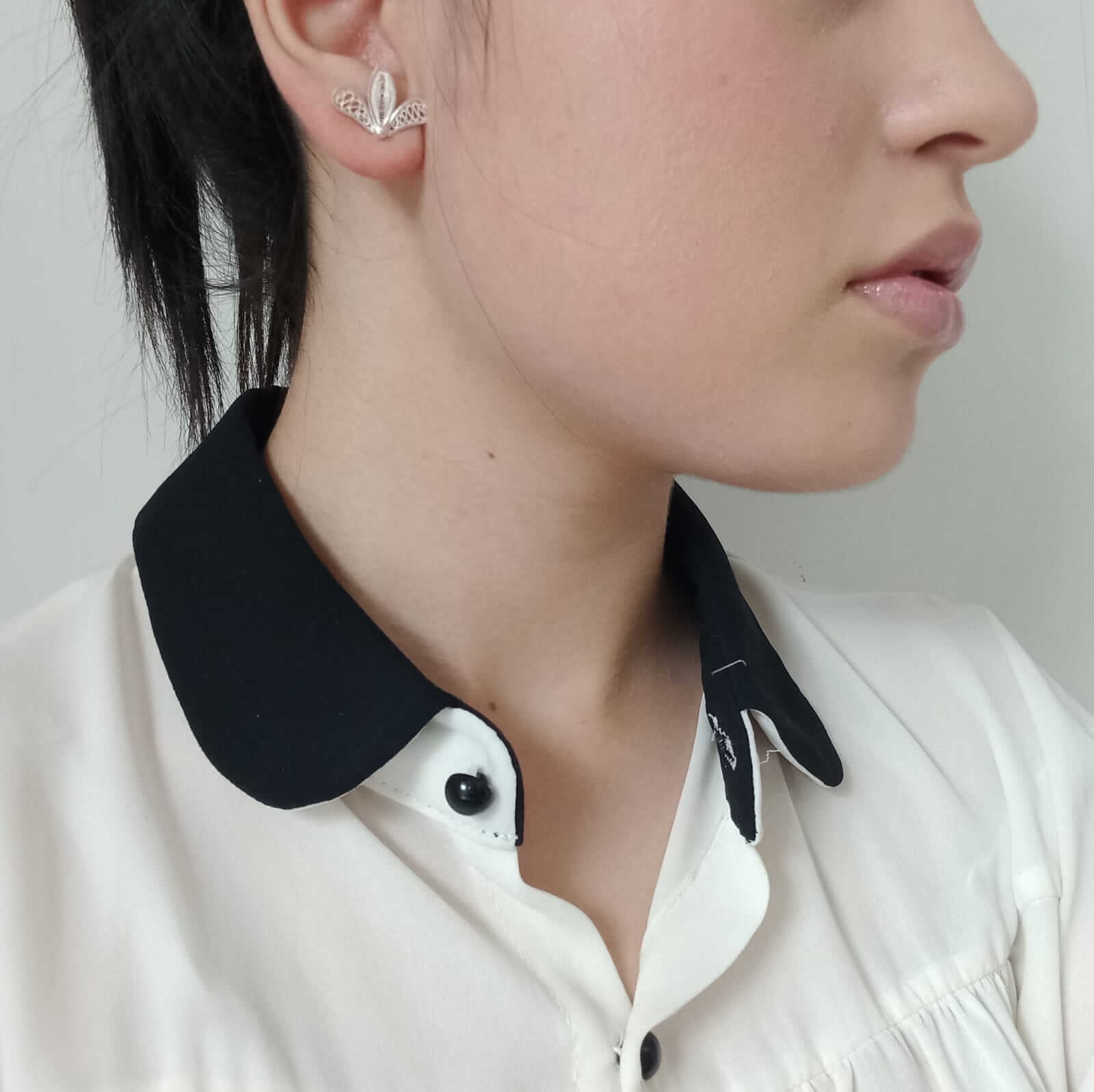 SAMBBER ARETES DE PLATA EN FILIGRANA EN FORMA DE HOJAS